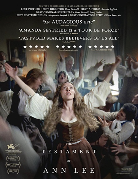 Acaba de ver la luz de la mano de Searchlight Pictures, un primer avance en forma de un teaser tráiler que podéis ver a final de pagina junto su póster oficial, del nuevo trabajo tras las cámaras de la realizadora Mona Fastvold titulado The Testament of Ann Lee. Tras sus anteriores The Sleepwalker (2014) y The World to Come (2020), Mona Fastvold se adentra en un drama histórico con tintes de musical, que tras su estreno mundial en el pasado festival de Venecia, llegará a los cines de Estados Unidos el próximo 25 de diciembre.