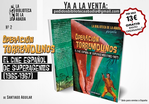 Operación Torremolinos. El cine español de superagentes (1965-1967) de Santiago Aguilar ya a la venta a un PVP unitario de 13,00€ y se puede adquirir únicamente a través de la propia editorial, escribiendo al mail pedidosbibliotecaabadia@gmail.com (gastos de envío por correo ordinario gratuitos,  promoción solo válida para territorio español) así como en la tienda La mansión del terror (Calle Alondra, 44, Local 4) de Madrid.